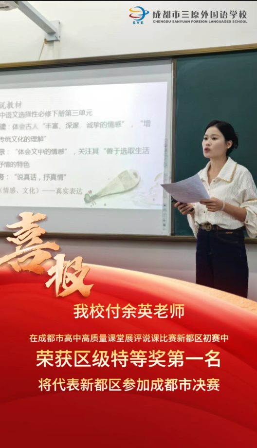 成都市三原外国语学校是2000年创办的十二年一贯制民办外国语特色学校。中学部位于新都区毗河东路359号,占地300余亩,建筑面积10万多平方米。拥有八大林区、六大广场、三道长廊、两河景观,是环境质量一流的“天然氧吧”、人与自然合一的“读书圣地”。学校现有初中部、高中部共60个教学班,在校生近3000人,教职员工400余人。 学校现有教育专家、特级教师和学科带头人等共42名,省、市、区级骨干教师68名,优秀青年教师76名,高级教师88名。教师队伍结构合理,业务精良,视野高远,理念先进,务实勤奋,充满朝气,..