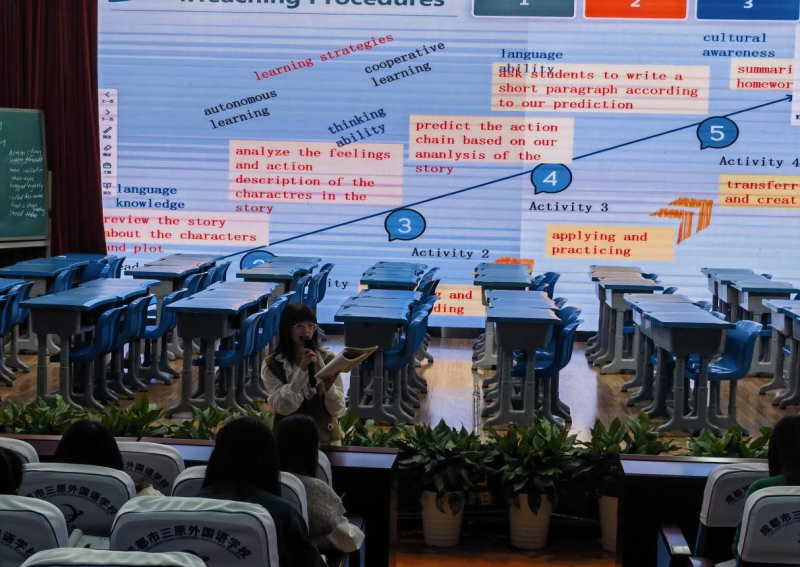 2023年10月16日下午,成都市新都区高中英语三新背景下读后续写微技能之动作链写作教学研讨活动在成都市三原外国语学校举行。此次活动立足新课标,探究新题型,着力促进教师专业成长。本次活动由新都区教育科学研究院朱红老师牵头,成都市三原外国语学校高中教研组长蒋晏林老师主持,新都区全体高中英语老师和青白江区部分学校老师,中心组老师和课题组全体人员参与研讨和交流。