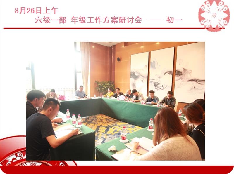 第三,各年级各部门分享各自的“人班合一”的方案。初一年级定格为“抓常规、求创新、打基础、定格局”;初二年级定格为“紧盯目标、分析问题、做实关键、打造团队”;初三年级定格为“大干、苦干、加油干、力争拿下一百万”;高一年级定格为“明基情、定目标、抓习惯、成格局”;高二年级定格为“齐抓共管、知难而上、苦尽甘来”;高三年级定格为“苦战高三、再筑底盘”;国际部定格为“五位一体留学模式”。各年级、部门均表示,将在“‘人班合一’——同盟体模式”的引领下,为打造优秀年级、部门而努力工作。