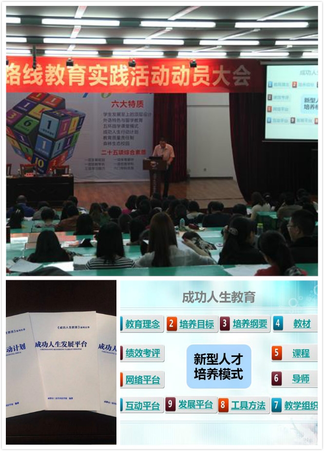 会上,党总支书记、副校长宋伟做了动员讲话,总支委员、副校长伍阳斌做了具体部署。杨能生校长结合学校教育教学实际,以“成功人生教育”为主题进行了新型人才培养模式的解读。杨校长从教育理念、培养目标、培养纲要、教材、课程、导师、教学组织、工具方法、发展平台、互动平台、网络平台、绩效考评12个板块详细解读了成功人生教育的具体操作。强调我校党的群众路线教育实践活动,始终坚持“为民、务实、清廉”为主要内容,着力于”为社会、学生、老师、新都区的教育做什么、办什么样的教育”。“成功人生教育”为帮助家长和学子树立规划意识,做好个体学业设计和个体素质设计规划,提供了科学的诊断工具和方法。学校近期已面向社会举行了4场的“个体发展规划设计”体验公益性活动,已有800余名学子和近1600余名家长参加,受到家长和学生的一致好评。
