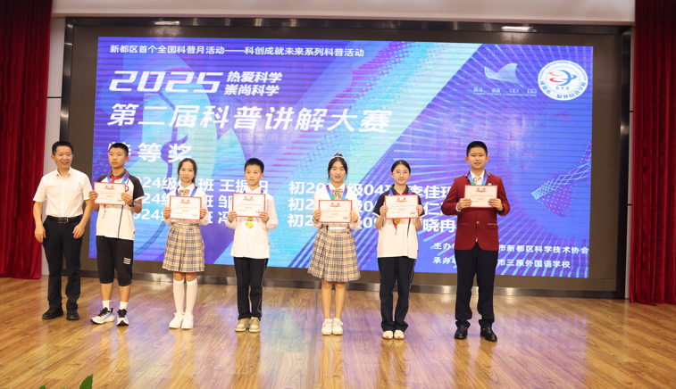 在全国科普活动月的热烈氛围中,作为新都区“科创成就未来”分会场核心活动,成都市三原外国语学校第二届科普讲解大赛于918日至27日成功举办。本次活动以“热爱科学,崇尚科学”为主题,初一年级15位选手、初二年级16位选手参与角逐,充分展现了学校科创教育成果与学生的科学探索热情。