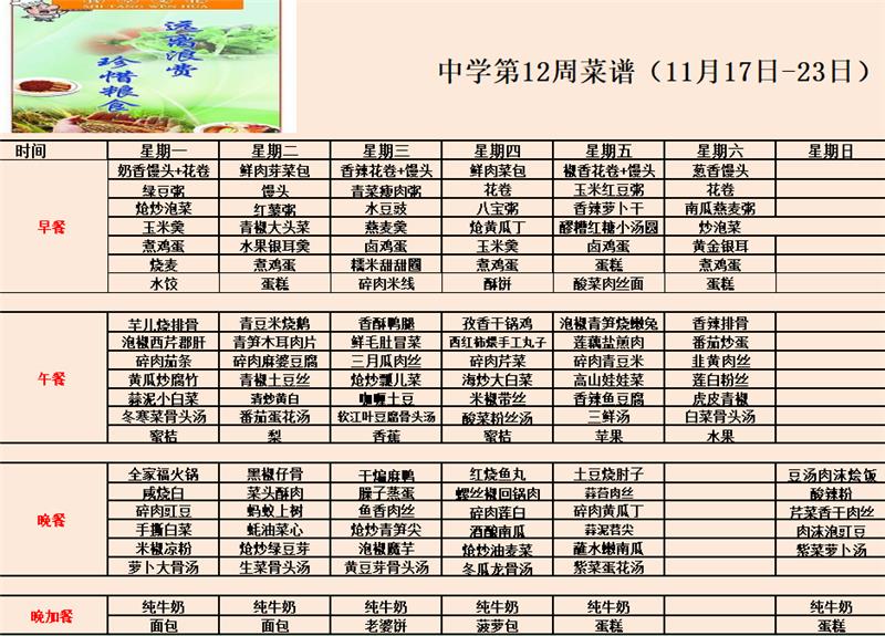 中学第12周食谱