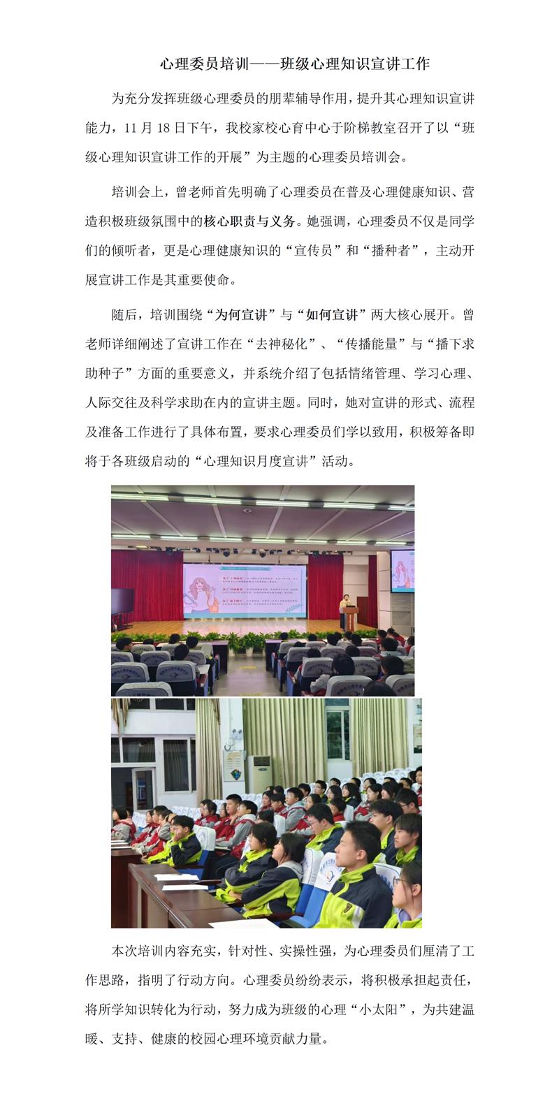 心理委员培训——班级心理知识宣讲工作