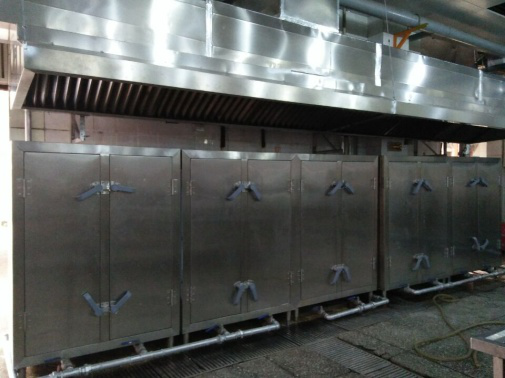 高标304不锈钢材质的蒸饭柜,配备风柜、风管抽排装置,更安全、卫生、美观,多功能多用途,保温、环保、高效、节能,冲压成型的不锈钢蒸饭,高效湿蒸消毒,效果更佳,为同学们提供营养、美味、可口的主食。