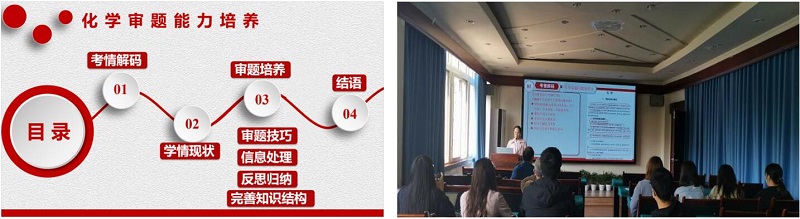 随后,成都市三原外国语学校的喻琴老师的“化学审题能力的培养”讲座,从考情解码(高考对能力的要求)和学情现状(审题失误较多)两个方面阐述化学审题问题的提出背景和审题能力培养的重要性,以及加强审题技巧的指导。提出了—利用模型思想来提高审题能力的具体对策,包括:确保审题的有序性和全面性、加强新信息处理能力的培养、规避学生审错题、传授审题经验以及激发学科兴趣、完善学生化学知识结构。