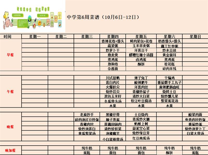 中学第6周食谱