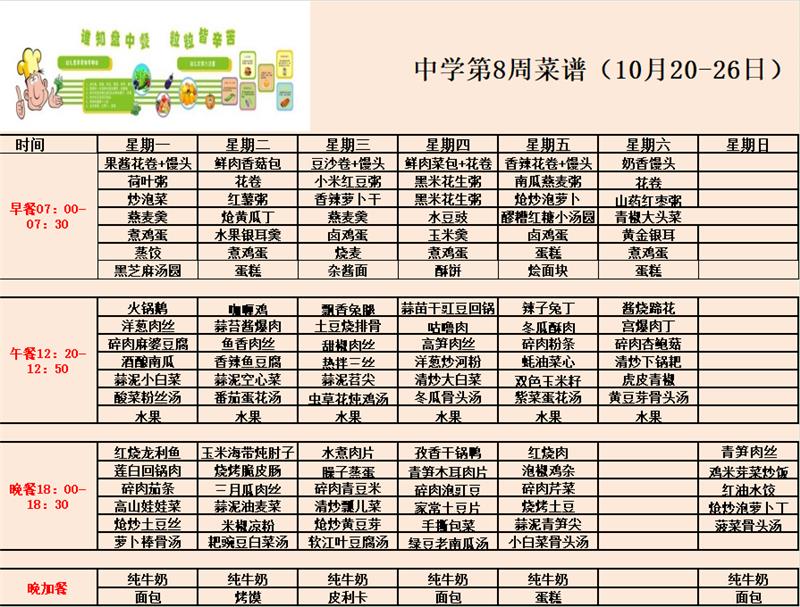 中学第8周食谱