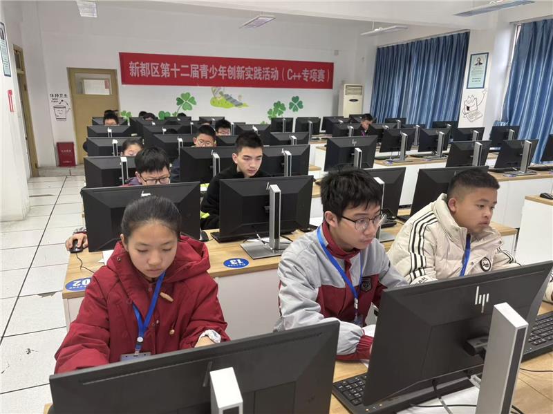 2025年12月6日上午,新都区第十二届青少年科技创新实践活动(C 专项赛)在我校顺利举行。本次赛事由新都区教育局主办,旨在激发青少年对信息技术的浓厚兴趣,提升编程实践能力,推动区域青少年科技素养全面发展。来自新都区多所中小学的近两百名学生齐聚我校,同台竞技、展示才华。