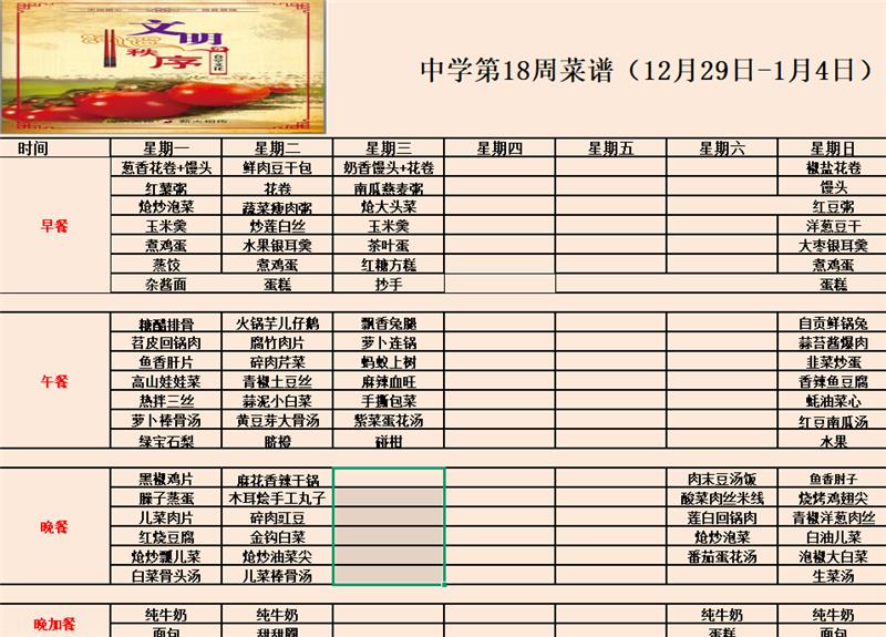 中学第18周食谱