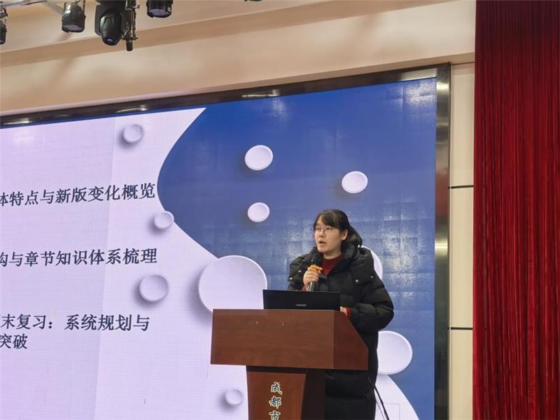 成都市三原外国语学校初二年级文雯带来的《数道同归—浅谈北师大八上期末复习路径与策略》讲座,内容详实,兼具深度与实用性。既有新旧教材的精准对比,又有立足教材的复习良方,对期末重难点、学生得分要点梳理透彻,靶向性极强。更融入AI赋能教学的新思路,为复习备考指明方向,赢得参会老师的一致好评。