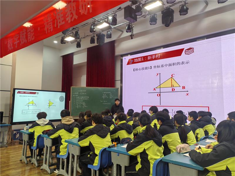 第二节课由成都市三原外国语学校的杨昊老师带来《一次函数与面积》专题课。杨老师采用“答题闯关”的教学模式,结合结算单进行过程性评价,并借助AI技术动态演示几何变化过程,有效帮助学生直观理解函数与面积的动态关系。课堂结构新颖、互动充分,学生学习投入,获得了与会教师的一致好评。