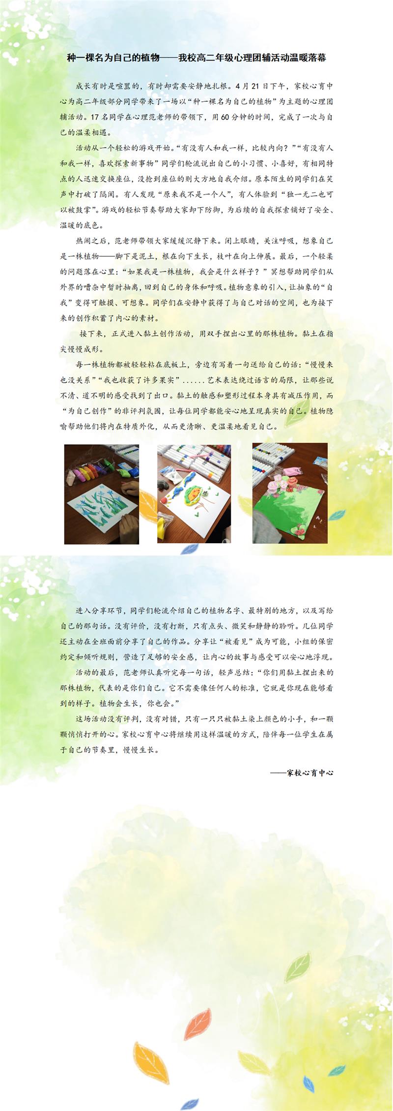 种一棵名为自己的植物——我校高二年级心理团辅活动温暖落幕